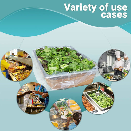 "Pack of 250 Disposable Polyethylene Steam Table Pan Liners with Twist Tie - 24x17 Inches for 1/2 Size Pans: The Ideal Solution for Caterers, Cafeterias, and Restaurants"